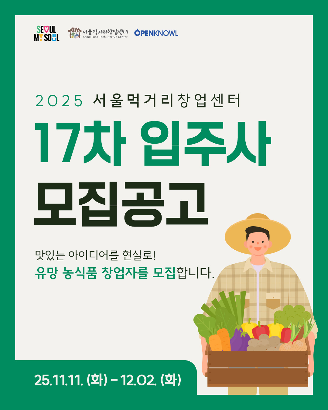 [서울먹거리창업센터] 2025년 17차 입주기업 모집
